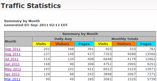 My Website Case Study:This page is a continuation of the About Me page: March 23, 2011 case study update: (Note: All future updates will be published below. Bookmark this page for future reference.) This is the first update of my ongoing case study on building a successful theme based website. If you have considered building a website to earn extra income or to drive traffic to your existing business, I hope the details that I provide here on the success of my site help you make the best decision. --- Side Note --- I launched Juicer Reviews and Recipes in January 2010 with the idea of building a website around something that I really enjoy doing and have slowly added new content on my free time. Working a full-time job and moving to a new state have kept me busy enough. The beauty of building a site like this, is that I can take my time and add pages only when I am up to the challenge. So far, I've added 25+ Juicer and Blender reviews and have about 50+ reviews completed and ready to be posted soon. I am on track to have my 2nd best month in traffic overall, with visitors from over 55 countries averaging around 50 readers per day. You are probably saying, "50 readers per day does not sound like much," but it is pure organic growth and a long ways away from the 2 readers per day that I started with in APR 2010. All 100% free traffic from Google, Yahoo, and Bing and my site traffic is trending upwards over the last year by 2500% (2 visitors per day in APR 2010 to 47 visitors in MAR 2011). See my traffic stats below: A view of my actual traffic statistics from April 10' to March 11'![]() Note: If you notice, the site had a traffic spike in September 2010; I published the master cleanse diet section and tested out pay per click (PPC) advertising campaigns to drive additional traffic. Visual chart of my traffic growth from April 10' to March 11'The following column chart is a visual representation based on the traffic statistics report shown above. This helps you see the actual growth in monthly traffic over the last year. ![]() Case Study Update: September 10, 2011With the explosive growth my website has seen in the last 5 months, I thought it would be good to give you a quick update. Compare the "visitors" column of March 2011 versus August 2011. ![]() You can see that in 5 months, the visitor traffic has increased by at least 300%. In other words, I'm now enjoying 3 times the amount of traffic I received in March 2011. --- Side Note ---